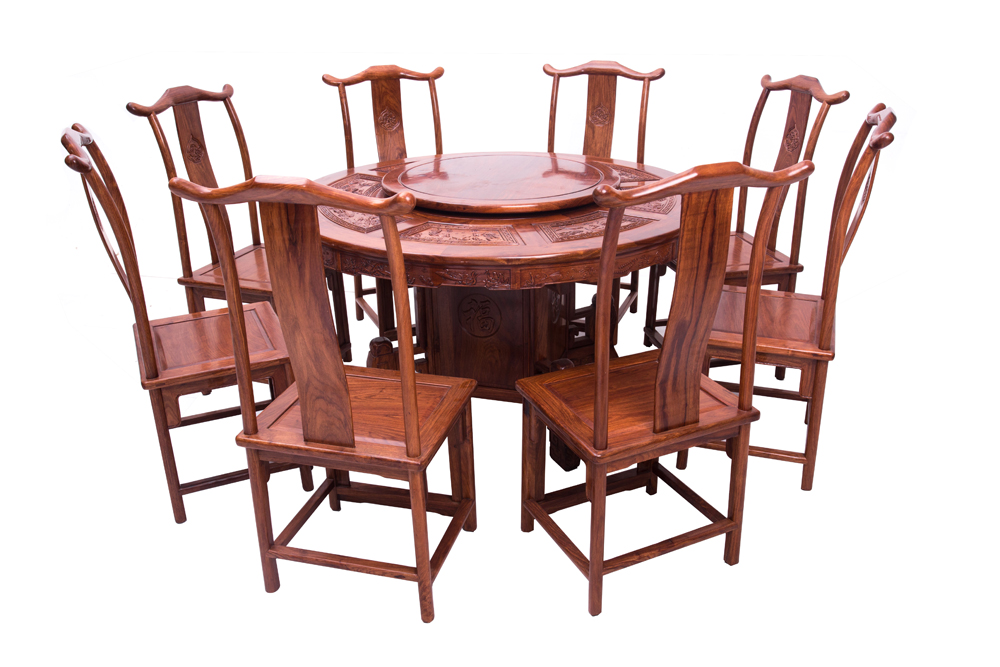 草花梨 圓桌:138X138X80 椅子:48X43X111