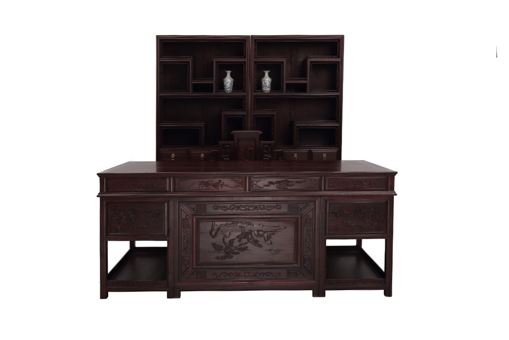 大紅酸枝 博古架:97X36X197 椅子: 68X56X99 寫字臺:176X88X81