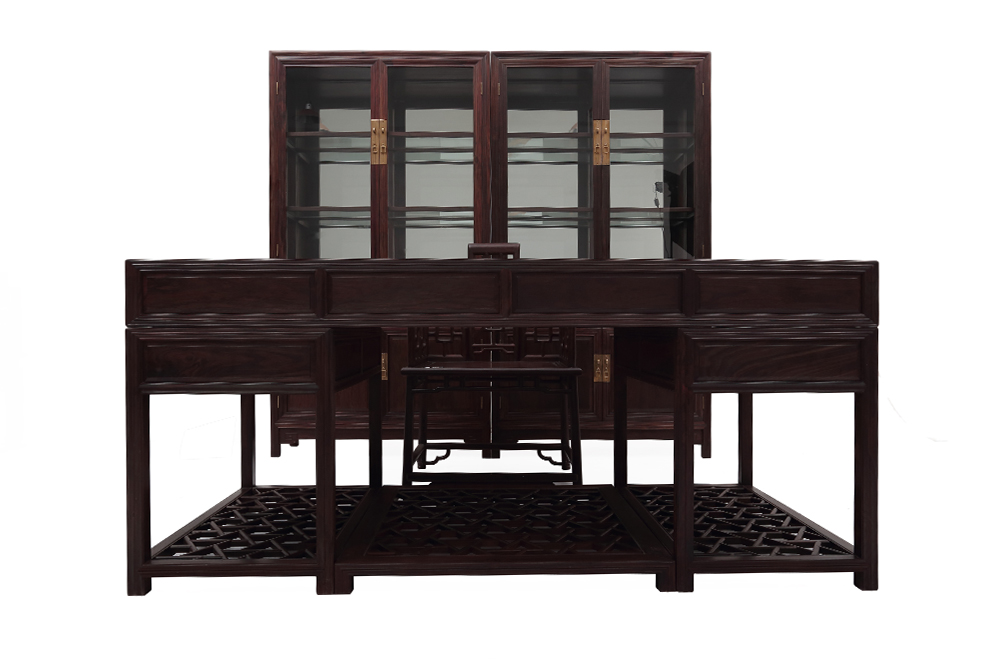 大紅酸枝 書柜:106X38X200 寫字臺:176X88X81 椅子:68X56X103