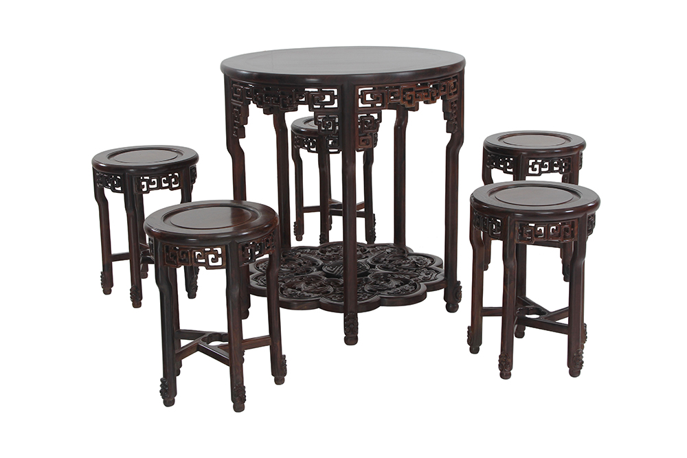 大紅酸枝 圓桌:78X78X83 圓凳:36X36X50