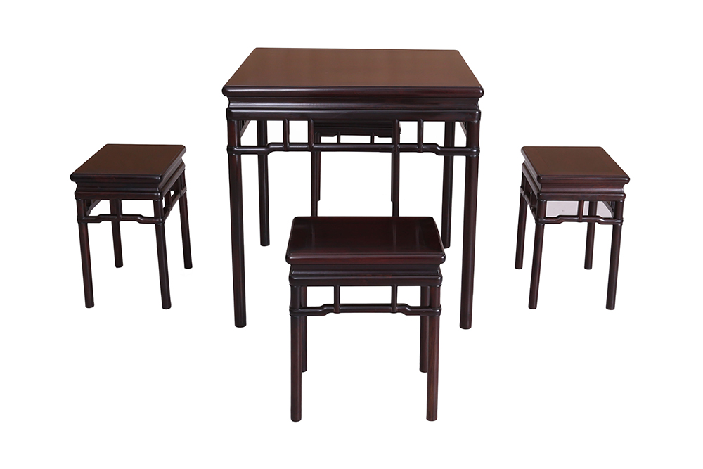 大紅酸枝 方桌:78X78X80 椅子:40X30X48.5
