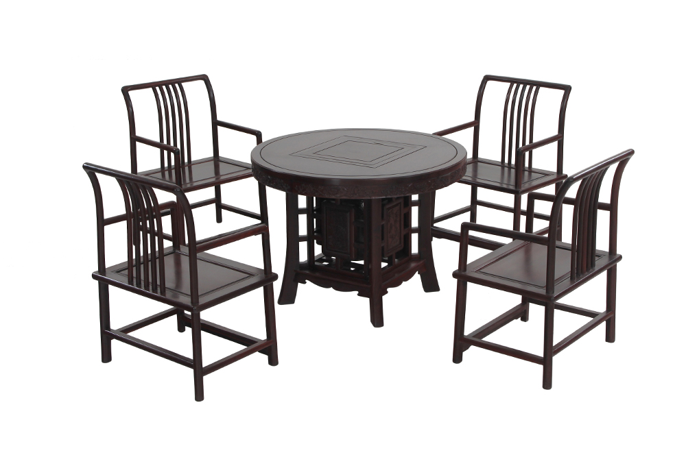 GZ016 100X100X74 62X46X86圓茶臺(5件套) 非洲酸枝