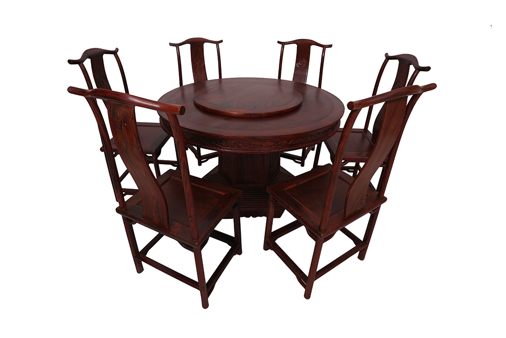 大紅酸枝 圓桌:128X128X81 椅子:50X42X112