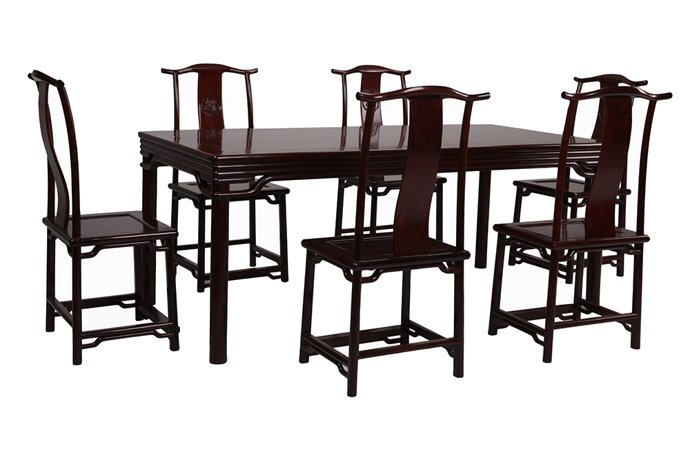 大紅酸枝 餐桌:197X93X81 椅子:50X42X108