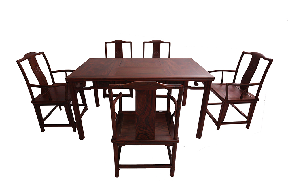 大紅酸枝 茶桌153X86X81 椅子57X47X100