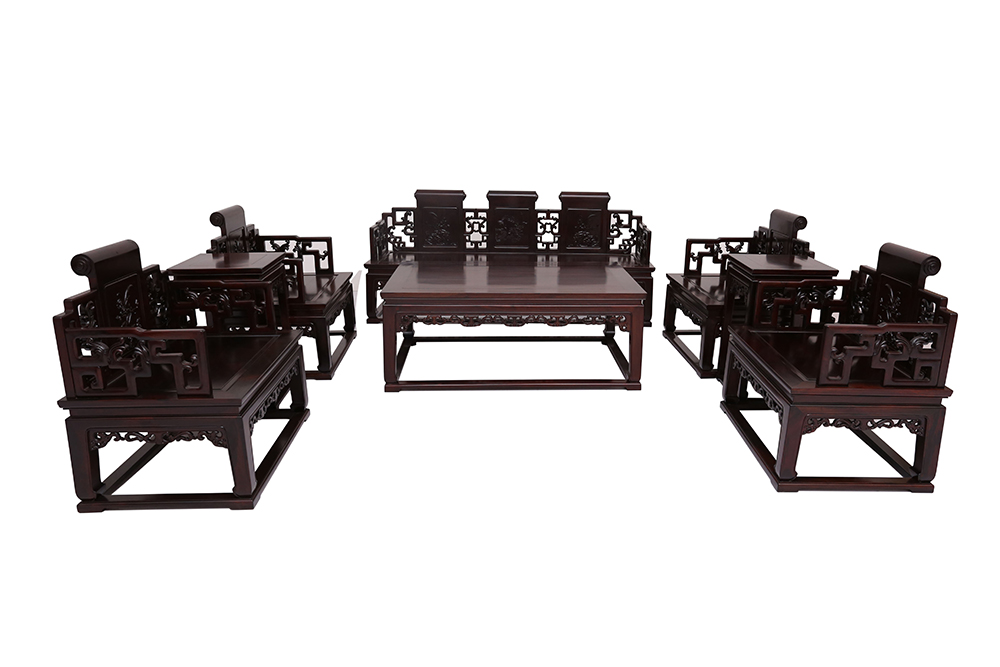 大紅酸枝 大平幾:132X88X52 茶幾:42X42X69 單人椅:86X80X88 三人椅:196X60X88