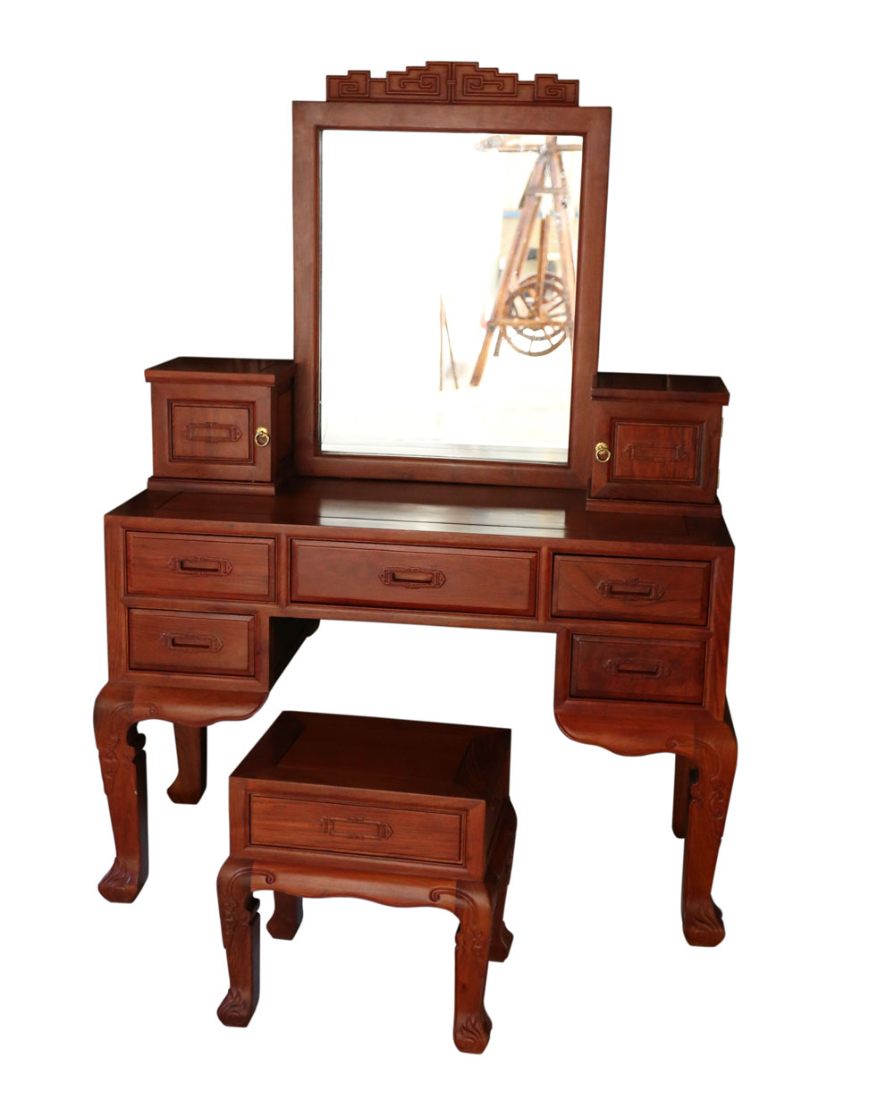 緬甸花梨 梳妝臺(tái):155X50X160 凳子:42X32X45
