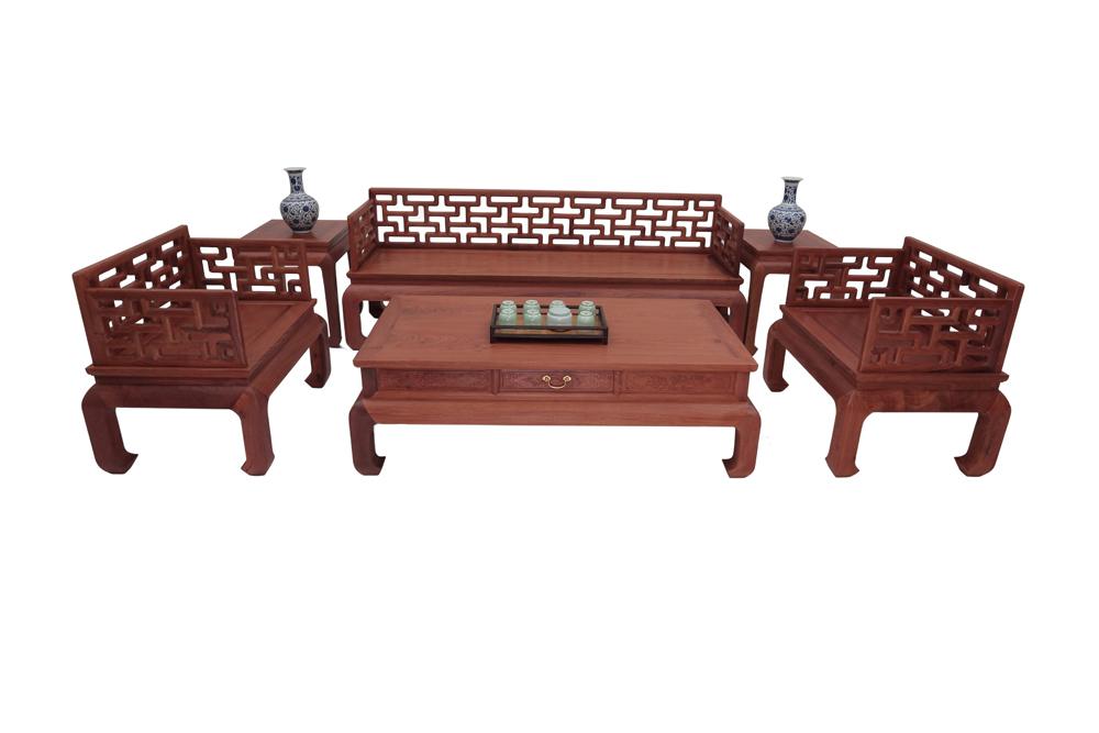 緬甸花梨 三人椅:212X61X79 單人椅:88X59X79 茶幾:59X49X60 大平幾:147X81X48